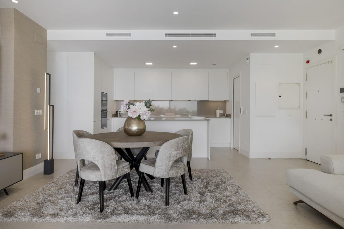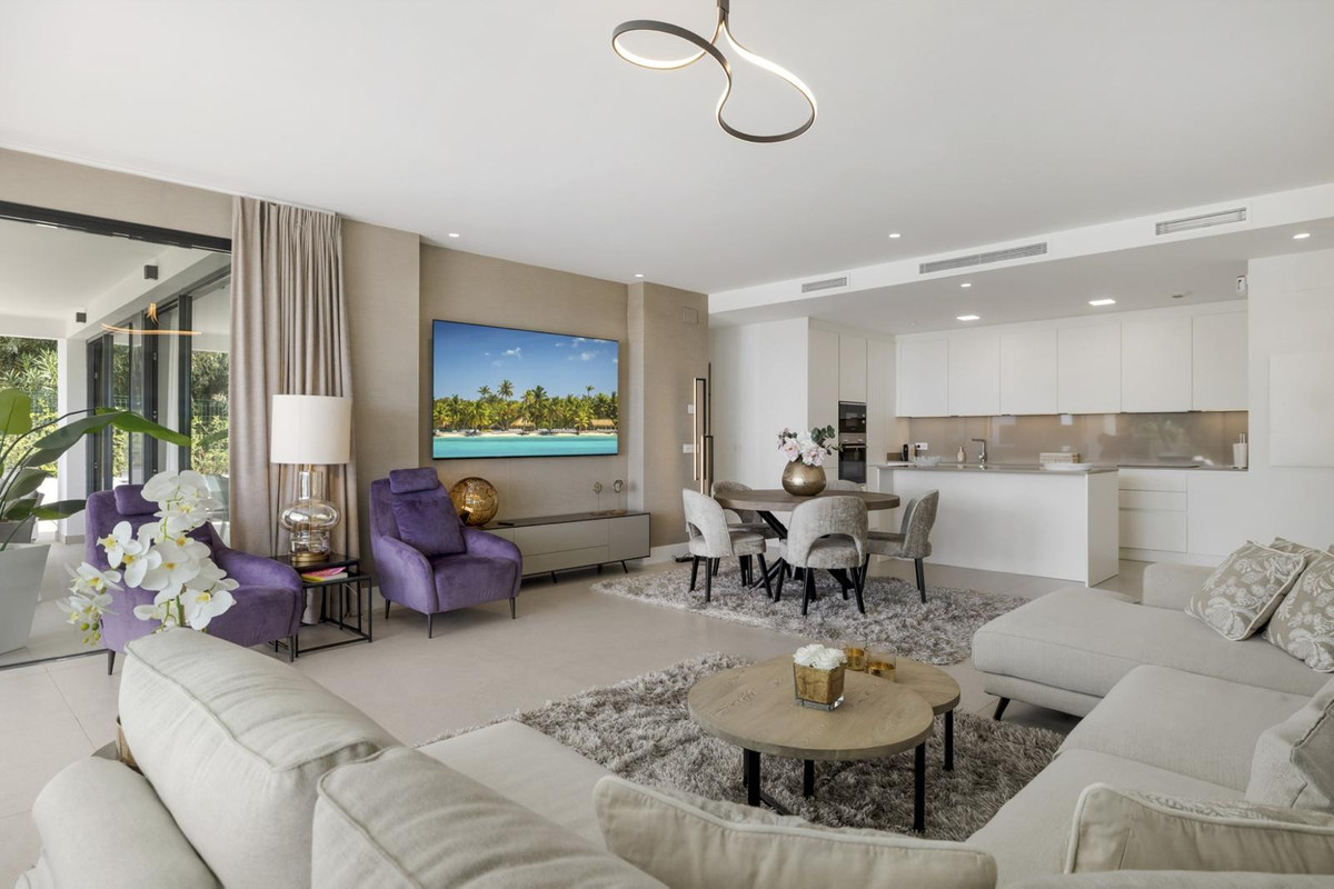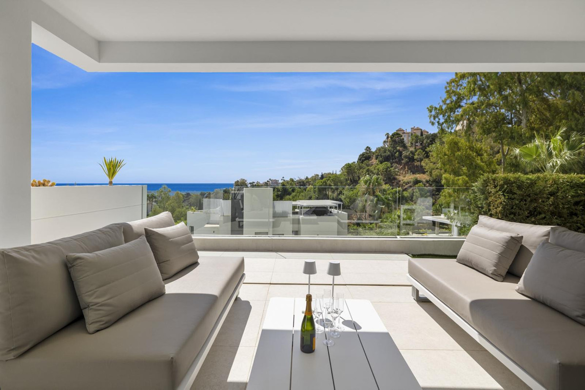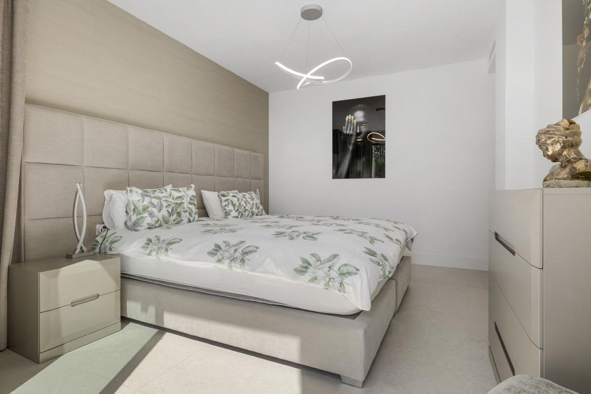 The luxurious 3-bedroom ground floor apartment is located in Aqualina residences with a south-facing orientation and views of the swimming pool and the sea and offers the latest technology and design. High quality and finish make this apartment a whole, using only the best materials. If you are looking for a luxurious, contemporary, modern flat in the heart of one of the best postcodes on the Costa del Sol, this flat is the perfect choice.