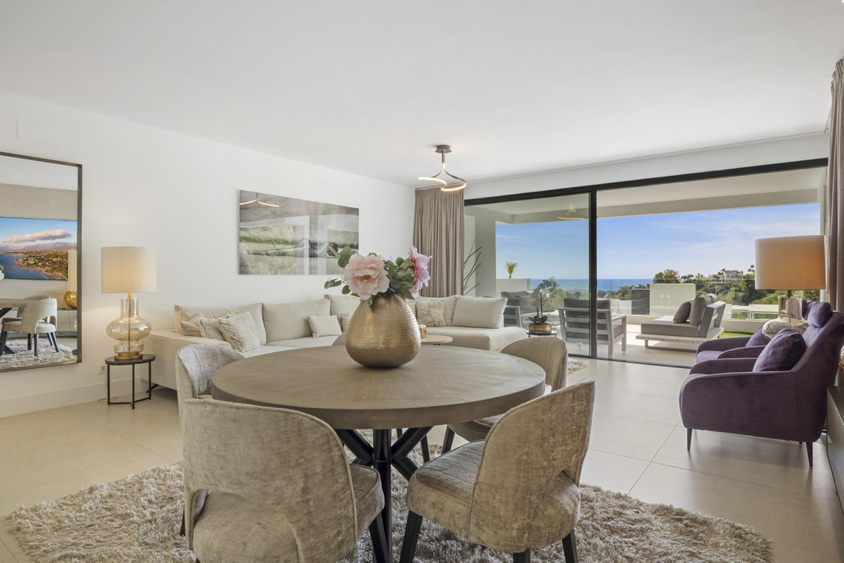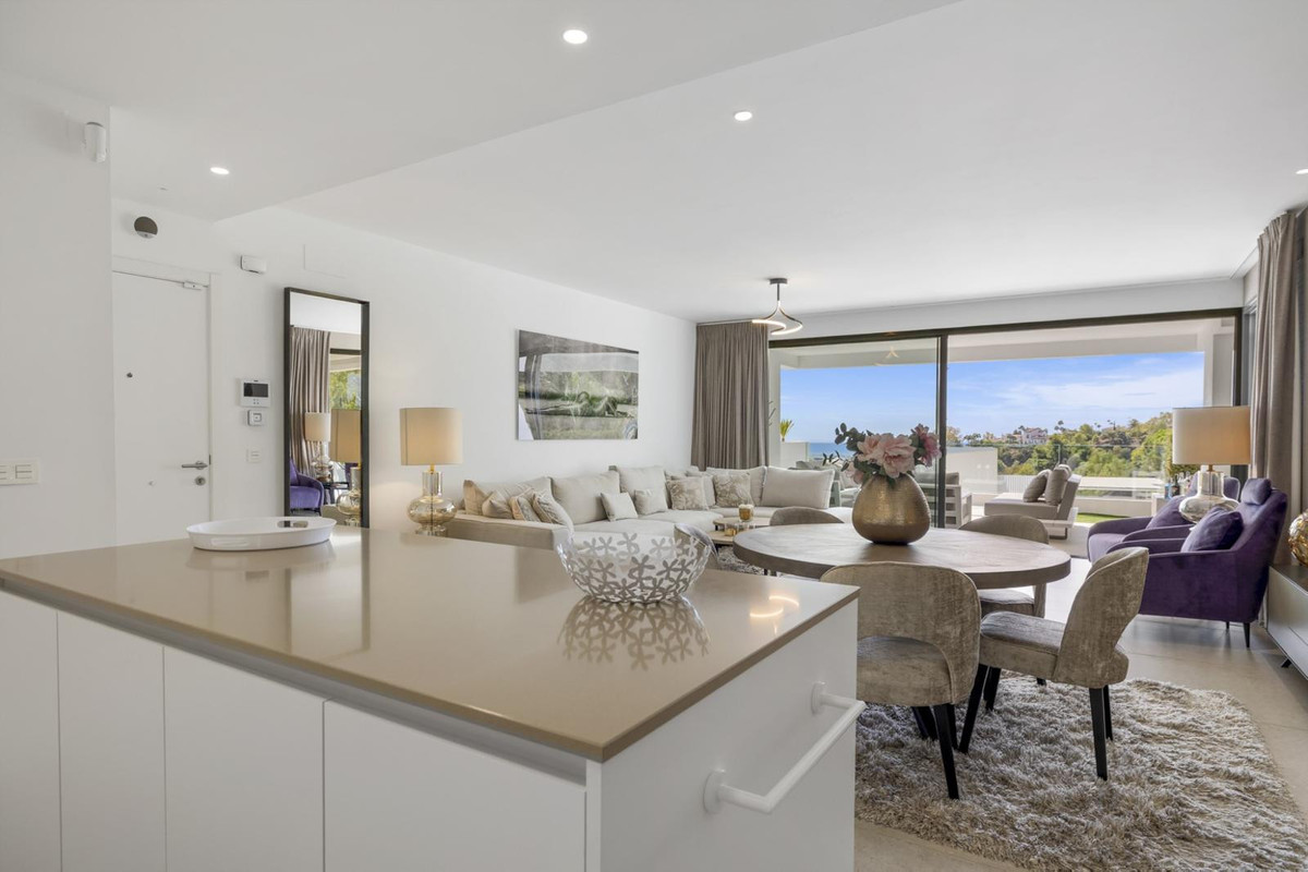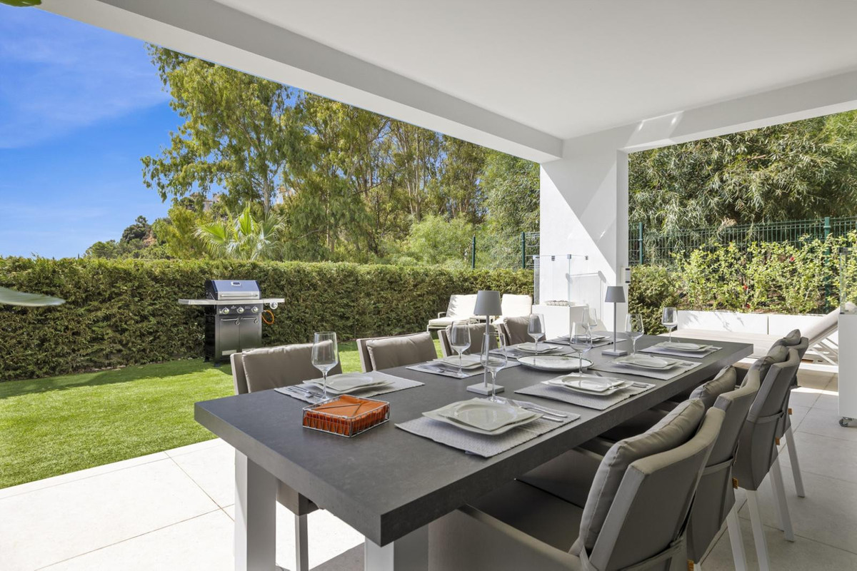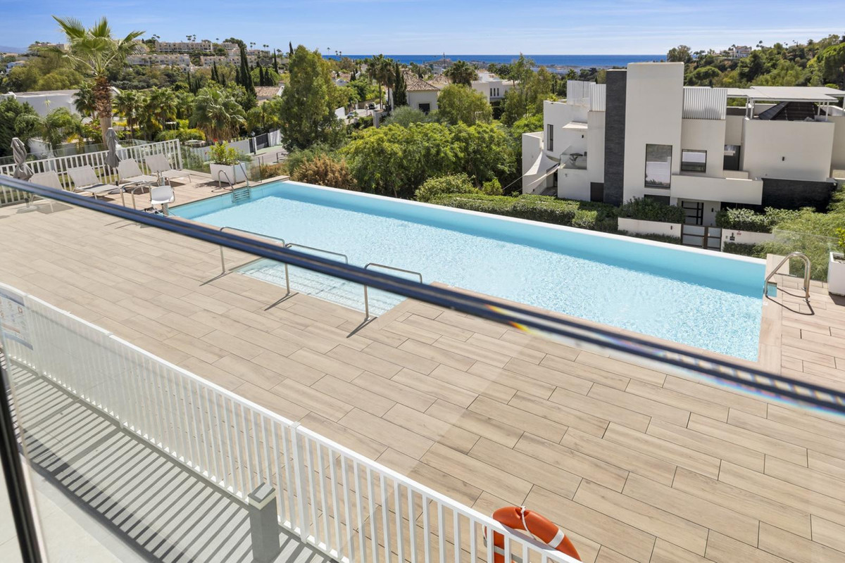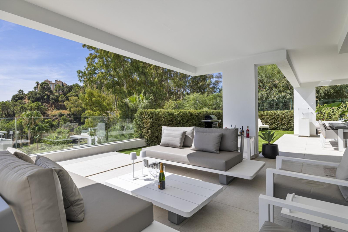 The luxurious 3-bedroom ground floor apartment is located in Aqualina residences with a south-facing orientation and views of the swimming pool and the sea and offers the latest technology and design. High quality and finish make this apartment a whole, using only the best materials. If you are looking for a luxurious, contemporary, modern flat in the heart of one of the best postcodes on the Costa del Sol, this flat is the perfect choice.