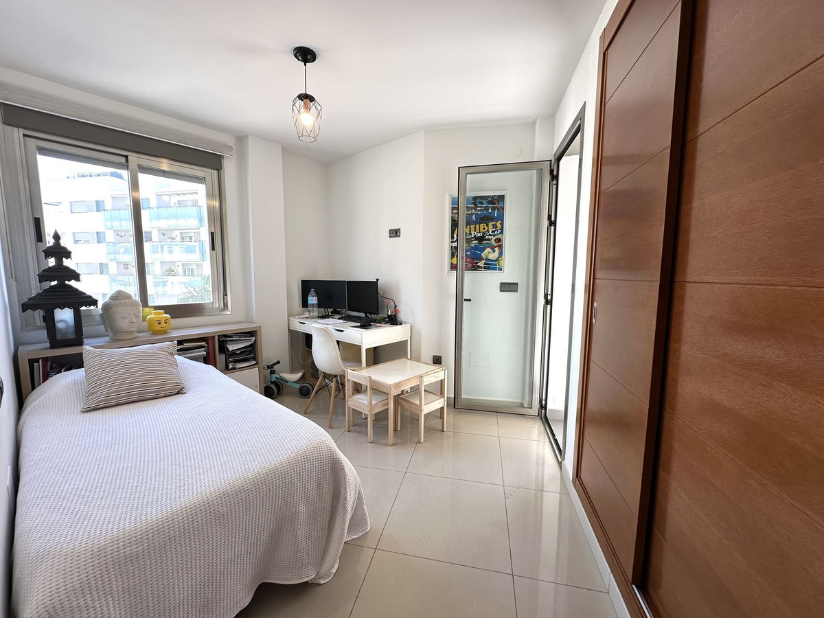 Från terrassen har man direkt access till ett av de välplanerade sovrummen, vilket skapar en härlig känsla av sammanhang mellan inomhus- och utomhusmiljö. Intill finner vi det andra sovrummet. Dessa två rum delar på ett badrum med dusch. Det rymliga Master bedroom har en privat badrum med badkar och AC installerat. Alla tre sovrummen har inbyggda garderober och naturligt ljusinsläpp.