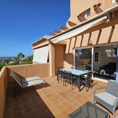 Ljus och elegant lägenhet med grönskande utsikt i Elviria.