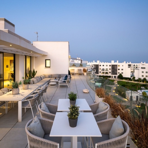 This modern 3-bedroom, 2-bathroom property offers a spacious open-plan layout with a bright living area and kitchen that flows seamlessly onto a generous terrace with beautiful sea views.