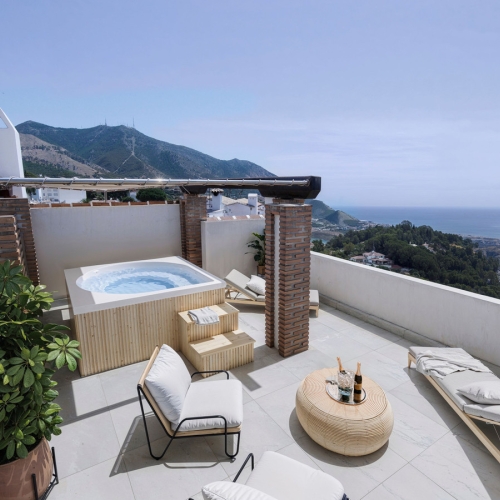 This beautiful southwest-facing 5-bedroom villa perfectly combines traditional Andalusian charm with spacious, sun-drenched outdoor living. Just a short stroll from the picturesque whitewashed village of Mijas Pueblo, the property enjoys complete peace and privacy along with breathtaking sea and mountain views.