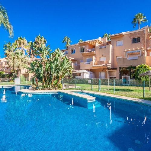 This spacious corner duplex penthouse has the most spectacular and panoramic sea and golf views from the large private terrace with its own private plunge pool. The lower level is where you will find the bright open lounge diner with generous terrace, large separate kitchen and utility room, one double bedroom and one bathroom. Upstairs has another double bedroom, family bathroom and the ample main bedroom with en-suite bathroom. From this level you also have access to the huge main terrace with all day sun and the ideal spot to enjoy those unbeatable views. The property is situated within walking distance of Cabopino with its wonderful beach as well as the marina with plenty of bars and restaurants to choose from. Owners also have the use of the gorgeous communal swimming pool and gardens.