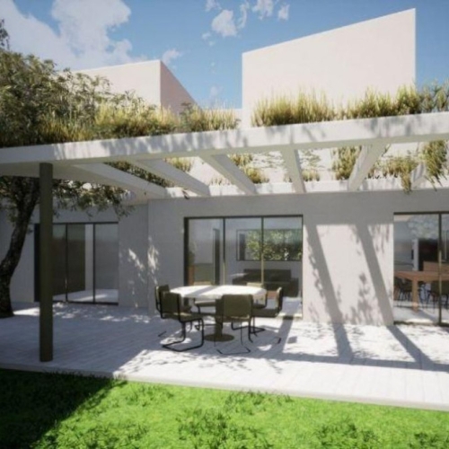 The house is ready to move into and features a warm and functional layout with two bedrooms, a spacious bathroom, and a bright open-plan living room with kitchen. The flat roof is fully accessible and includes a pergola — the perfect spot to enjoy the stunning open views of both the sea and the mountains, which can also be admired from the main floor.