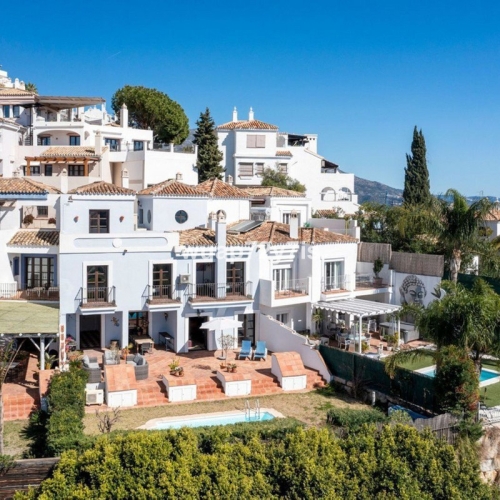 Spectacular corner townhouse in Lomas de Monte Biarritz, between Marbella & Estepona. Just 2 km from the beach and San Pedro de Alcántara, this 203 m² home sits on a 423 m² plot with a private tropical garden. Features include a bright living room with garden access, renovated premium kitchen, 4 bedrooms, 3 bathrooms, and a large solarium. Extras: Kommerling windows, photovoltaic solar panels (warranty until 2029), communal pool & gardens. A private retreat in one of the Costa del Sol's most sought-after areas.