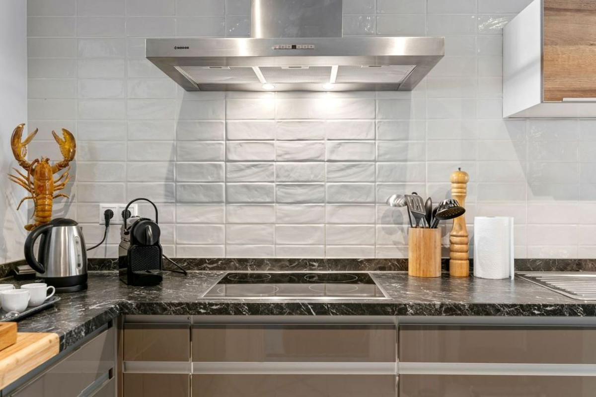 The apartment welcomes you with a spacious entrance hall that sets the tone for the rest of the home. From here, you can access the kitchen, fully equipped and modern, with a separate laundry room and a serving hatch that opens toward the living area, preserving both functionality and a sense of separation. The living room is exceptionally large and elegantly designed, featuring a cozy fireplace and large sliding doors that lead directly onto a spectacular 60 m² terrace.