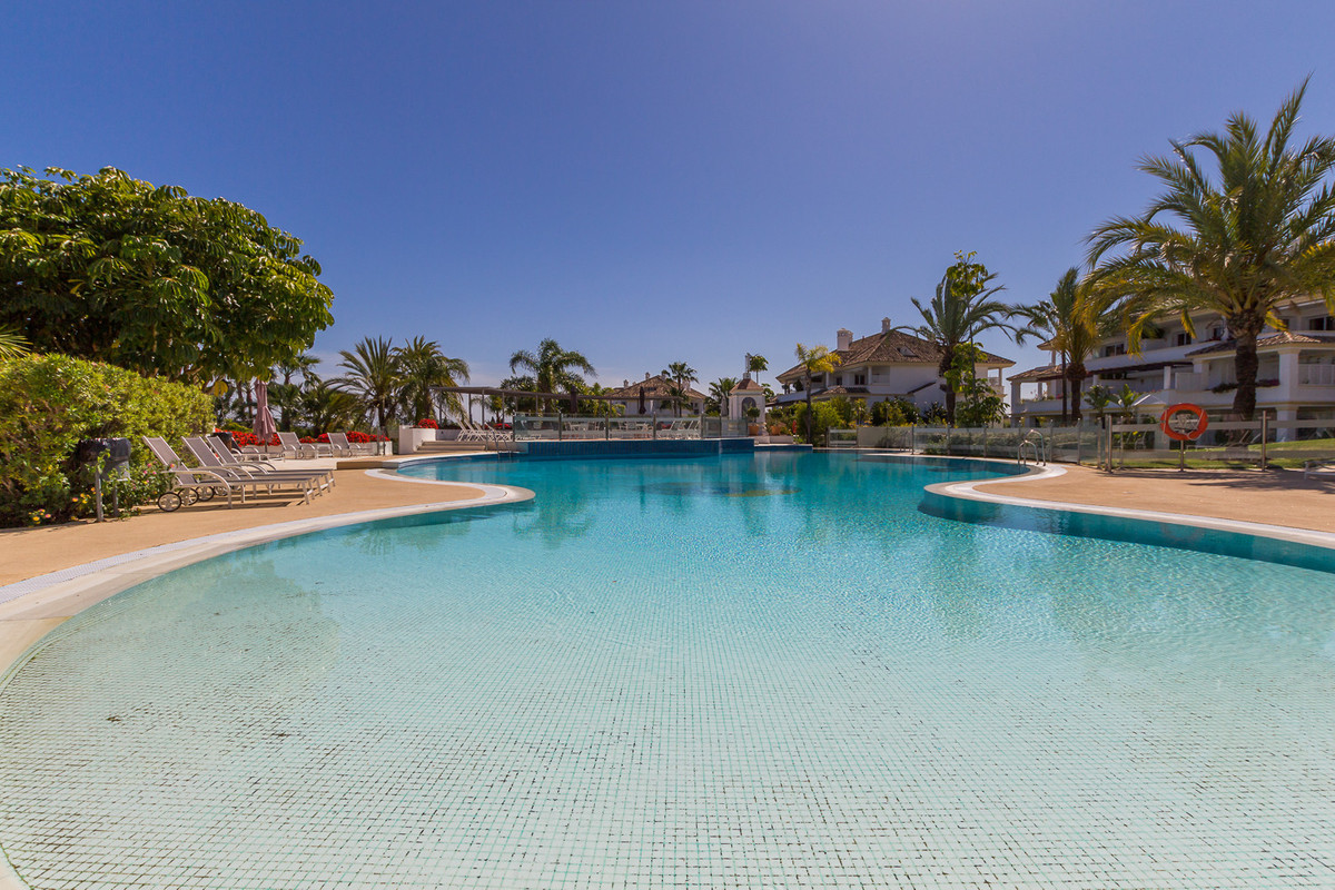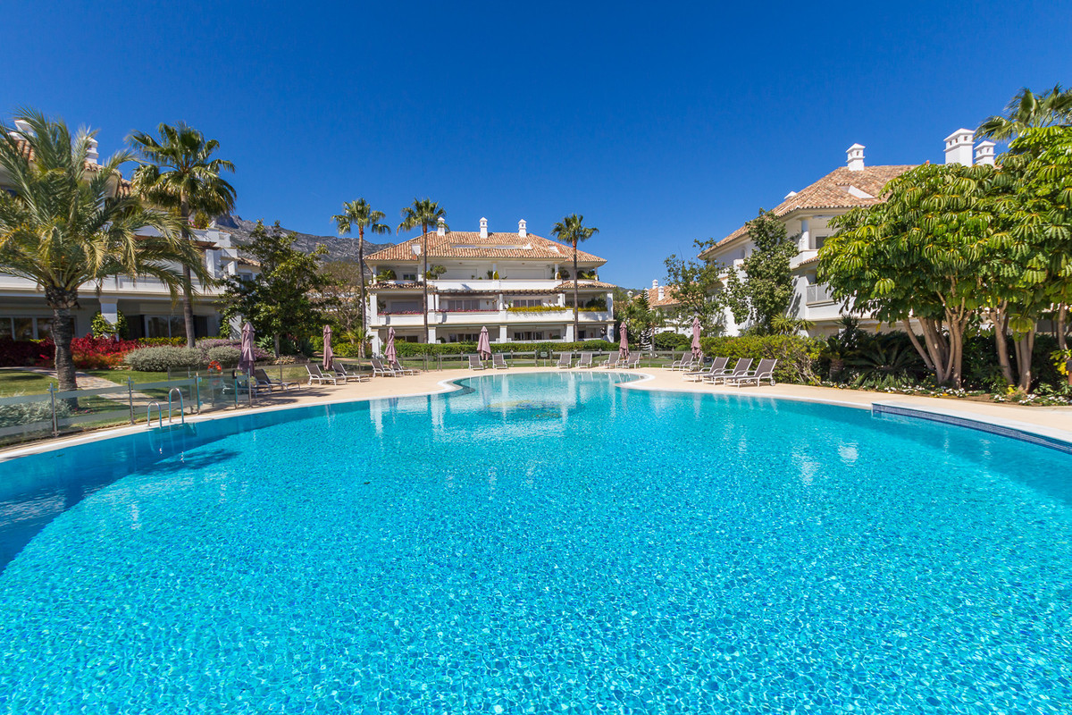 Beläget i den exklusiva Monte Paraiso urbanisering på Marbellas Golden Mile, erbjuder denna fantastiska söderläge lägenhet den perfekta blandningen av lyx, integritet och bekvämlighet. Beläget i en gated community med 24-timmars säkerhet, har invånarna vackert anlagda tropiska trädgårdar, fem pooler (inklusive en inomhusuppvärmd), ett gym, bastu, squash domstol, barnleksområde och ett sommarcafé. Nu helt renoverad, lägenheten visar raffinerade moderna interiörer med avancerad finish, skräddarsydda snickeri, Miele apparater, golvvärme och zonerad luftkonditionering. Dess eleganta öppna plan layout strömmar sömlöst på en rymlig solig terrass och halvprivat trädgård, vilket skapar ett idealiskt utrymme för avkoppling och underhållande. Erbjuds fullt möblerad, kommer detta exceptionella hem vara redo att flytta in i juli 2025 - bara några ögonblick från Puente Romano, stranden och Marbellas finaste bekvämligheter.