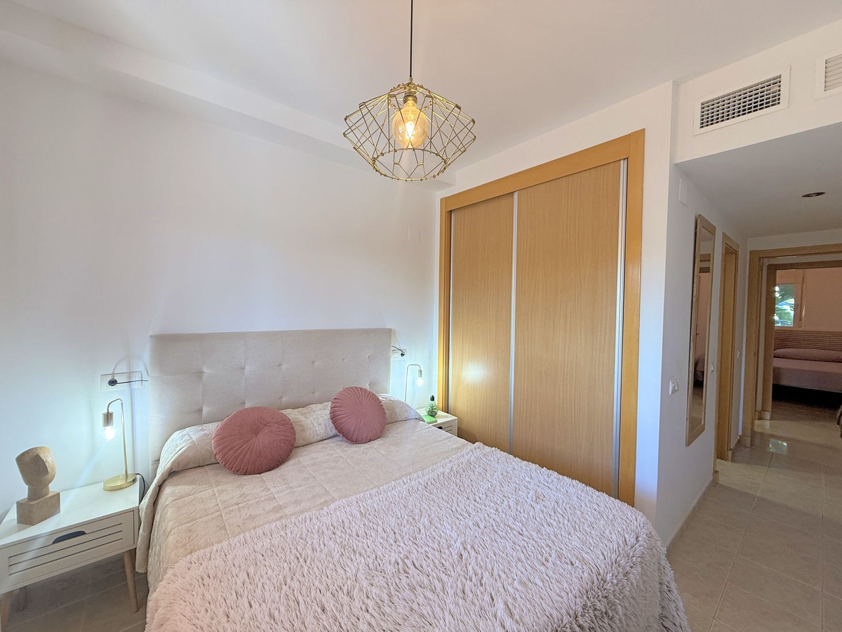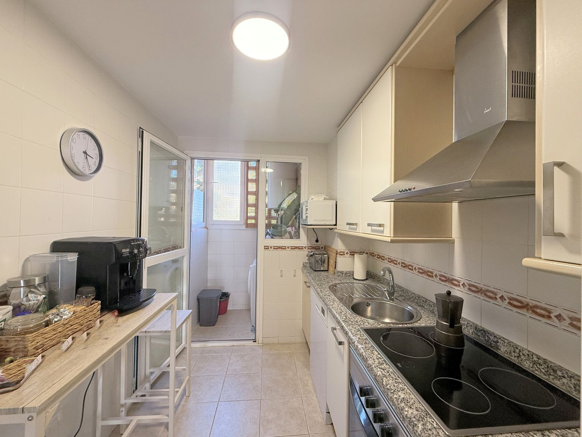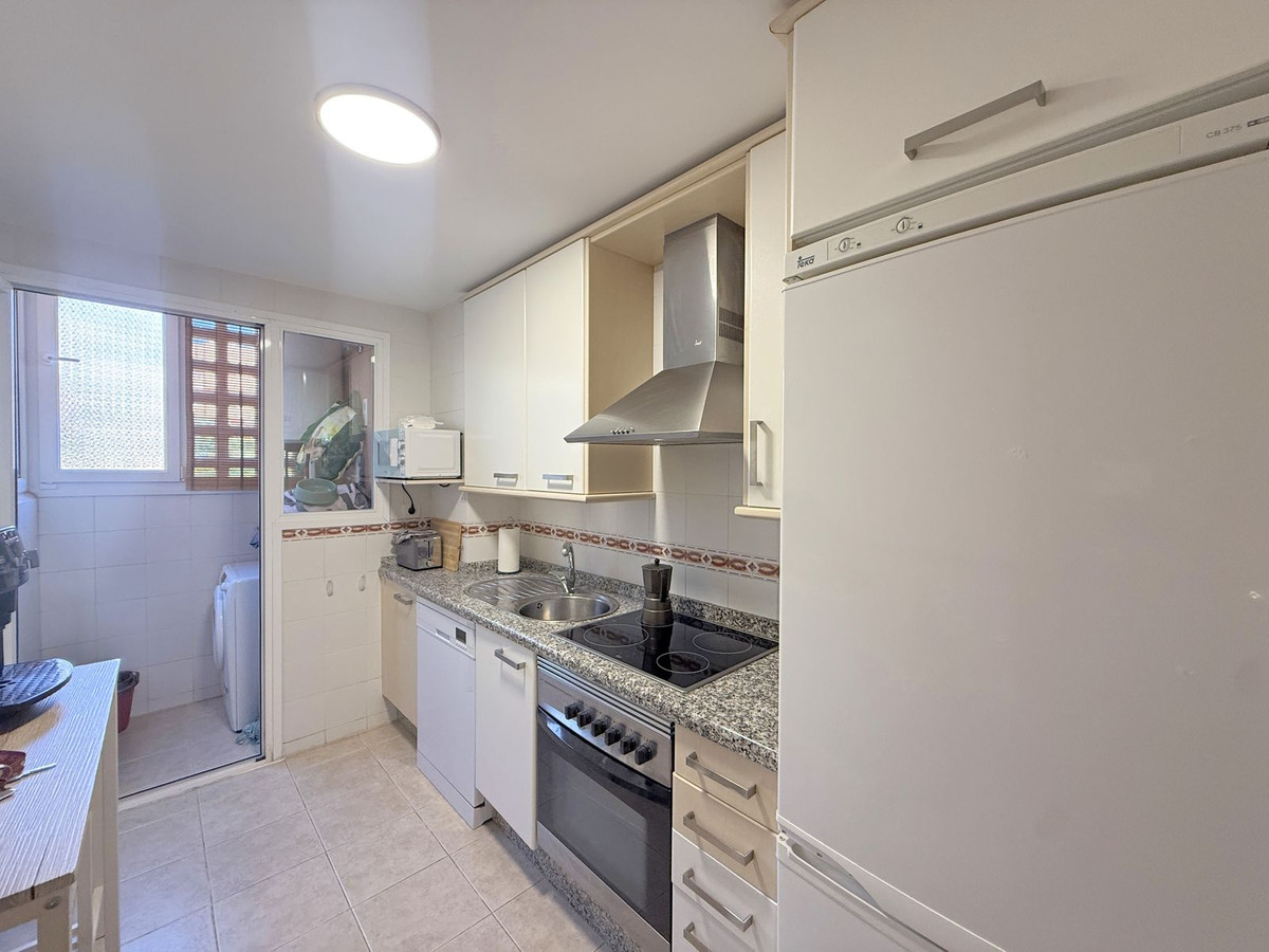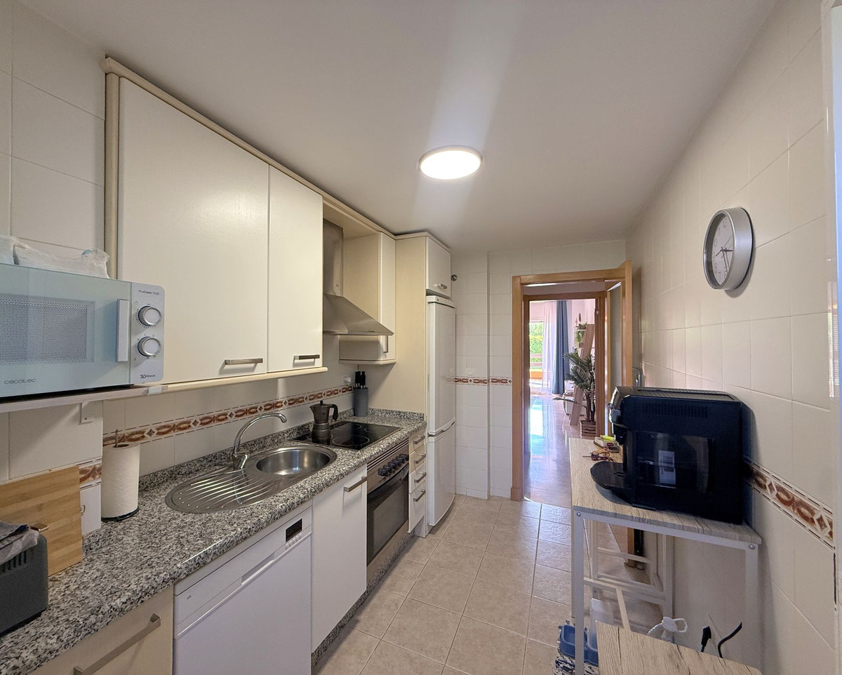 The apartment is in excellent condition and ready to move into. All on one level, it features 2 spacious bedrooms and 2 renovated bathrooms. The bright and welcoming living room opens through large sliding doors onto a delightful terrace overlooking the community gardens—an ideal spot to relax and enjoy the natural surroundings. Thanks to its south-facing orientation, the property enjoys sunlight throughout the day.