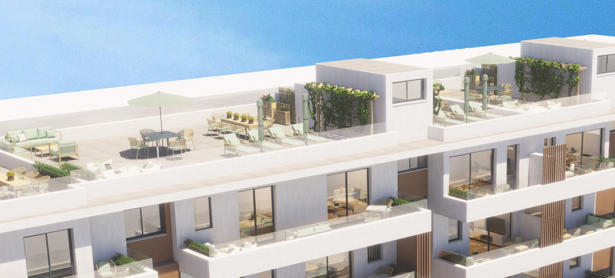 Dessa gemensamma utrymmen tillför mervärde till byggnaden och erbjuder en ideal miljö vid havet, perfekt för att njuta av det medelhavsliv.