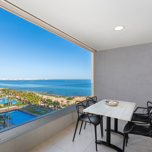 Upplev ett modernt medelhavsliv i denna fantastiska lyxlägenhet med 2 sovrum, idealiskt belägen i hjärtat av Villamartín, bara några ögonblick från La Zenia Beach och det populära köpcentret La Zenia Boulevard i det lyxiga gated området Villamartin Gardens.