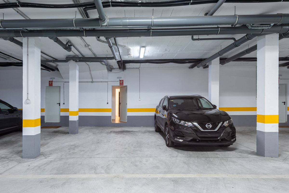 There is a basement level with 1 laundry room and 1 large multi-use room, currently used as an extra bedroom and TV lounge. From this level you have direct access to two private parking spaces.