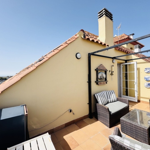 Discover this unique penthouse located on the top floor of a private residence with 24-hour security, just 900 meters from La Duquesa port and the sandy beaches, which are accessible with a 15-minute walk.