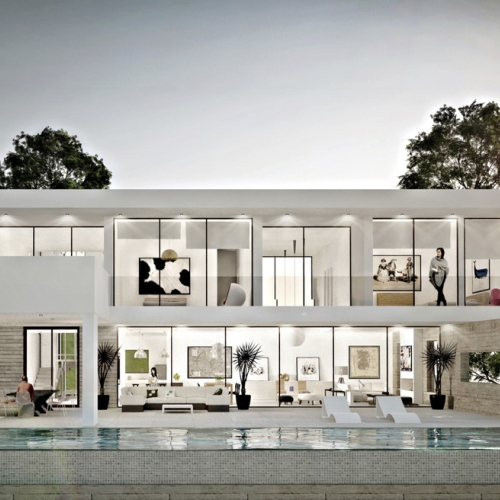 Each of our luxury villas has independent plots, a lush garden, private pool, lift and underfloor heating. With large windows and sliding doors that go from the floor to the ceiling, each interior space merges perfectly with the outside, allowing the natural light to inundate every corner of your home.