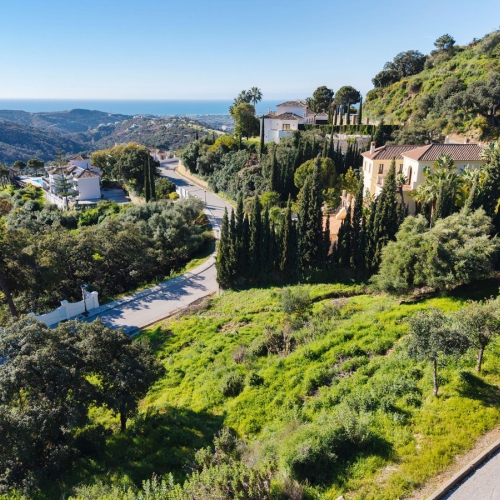 Set within the secure and tranquil community of Monte Mayor, this plot of approximately 2,300 m² enjoys an excellent elevated position with open south and south-east views over the mountains and the Mediterranean Sea.