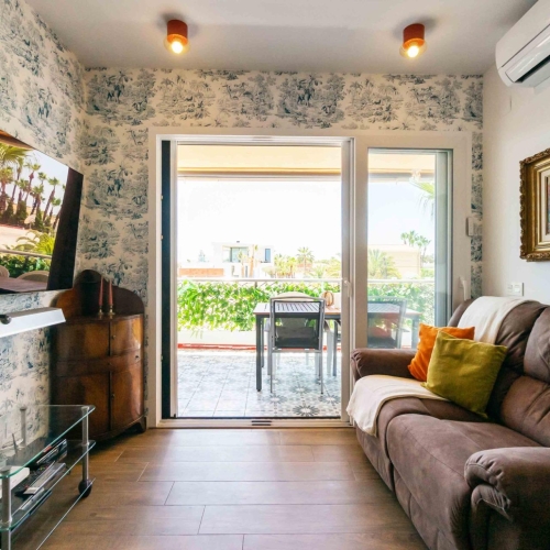 The apartment, southwest facing, is filled with natural light and offers beautiful views over the resort and the swimming pool. The open living area with a fully fitted modern kitchen flows seamlessly onto the spacious private terrace, the perfect place to relax in the sun or enjoy the sunset.