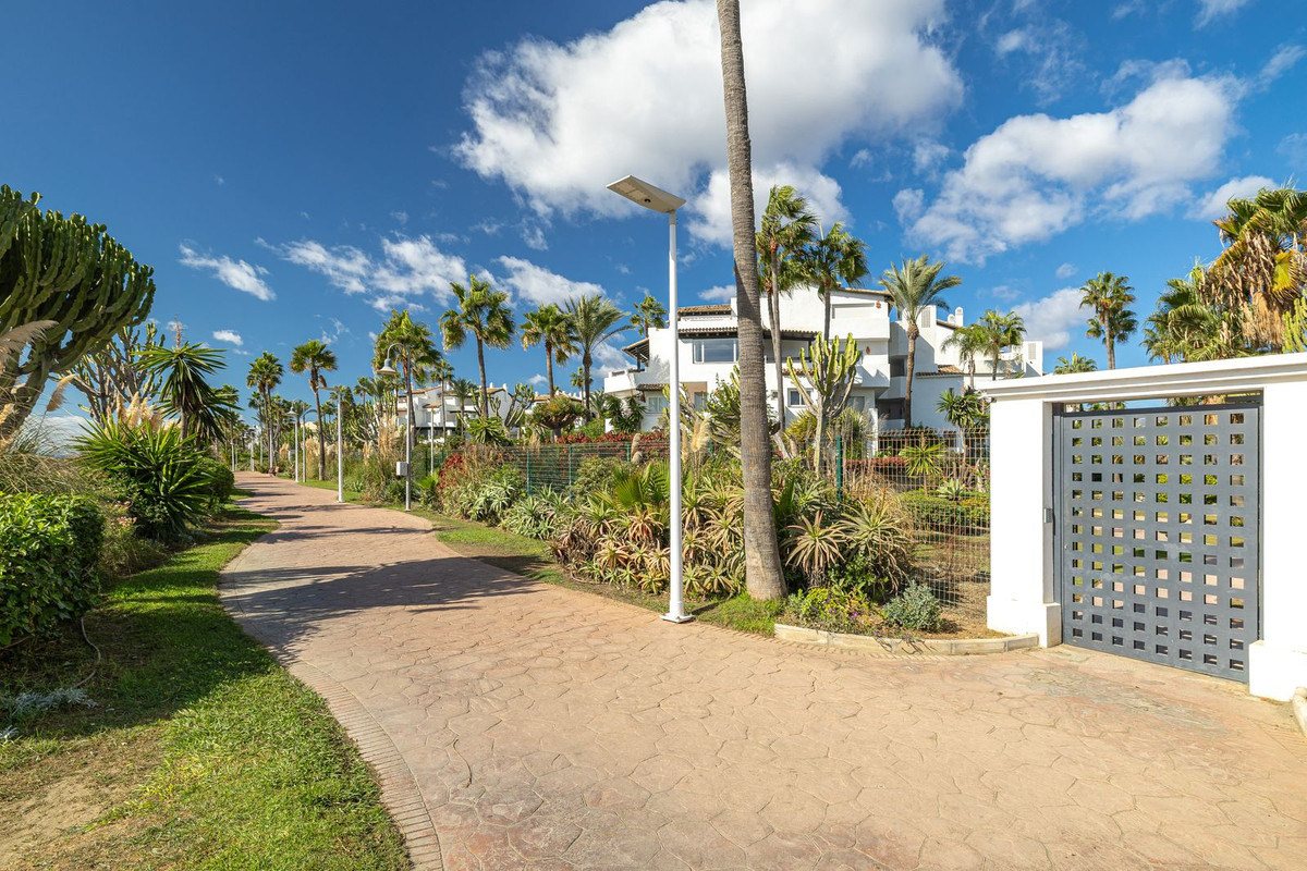 Fully Renovated Top-Floor Beachside Apartment with Direct Sea Access – Costalita, Estepona. Located in the highly sought-after area between Marbella and Estepona, this beautiful top-floor corner apartment has been recently renovated to a high standard. The corner position provides plenty of natural light and a bright, spacious feel throughout. Set within a frontline beach gated community, residents enjoy direct access to the beach through mature landscaped gardens and a lovely communal pool area. The apartment offers excellent privacy and a sunny terrace, perfect for relaxing or dining outdoors. Within walking distance, you'll find a variety of beach restaurants and the charming village of Cancelada. Only a short drive to the centres of Estepona and San Pedro, this property is ideal as a holiday retreat or for comfortable year-round living.