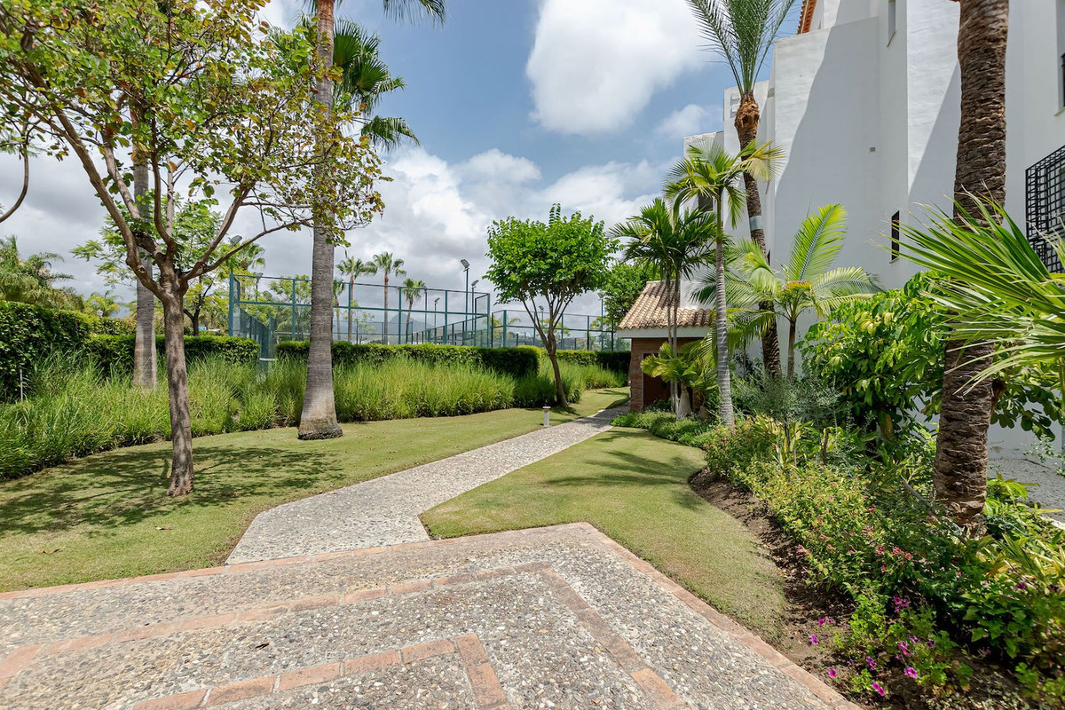Nestled within one of the most exclusive and impeccably maintained residential complexes in the area, this distinguished ground-floor residence perfectly combines luxury, comfort, and Mediterranean style. The gated community offers a serene and refined atmosphere, featuring beautifully landscaped gardens, an elegant swimming pool, a separate children's pool, and modern paddle courts — the ideal environment to enjoy a sophisticated and relaxed lifestyle.