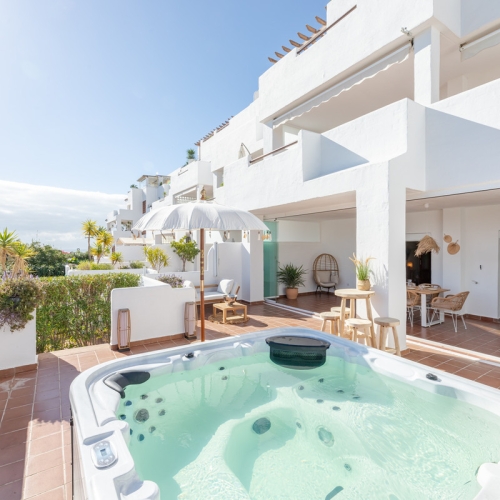 Its location is truly exceptional — 20 minutes walk from the beach, and a short drive from the charm of Estepona town centre, the glamour of Puerto Banús, and the cosmopolitan atmosphere of Marbella. Nearby, you will find supermarkets, restaurants, pharmacies, banks, and an excellent selection of public and private schools, all within easy reach.