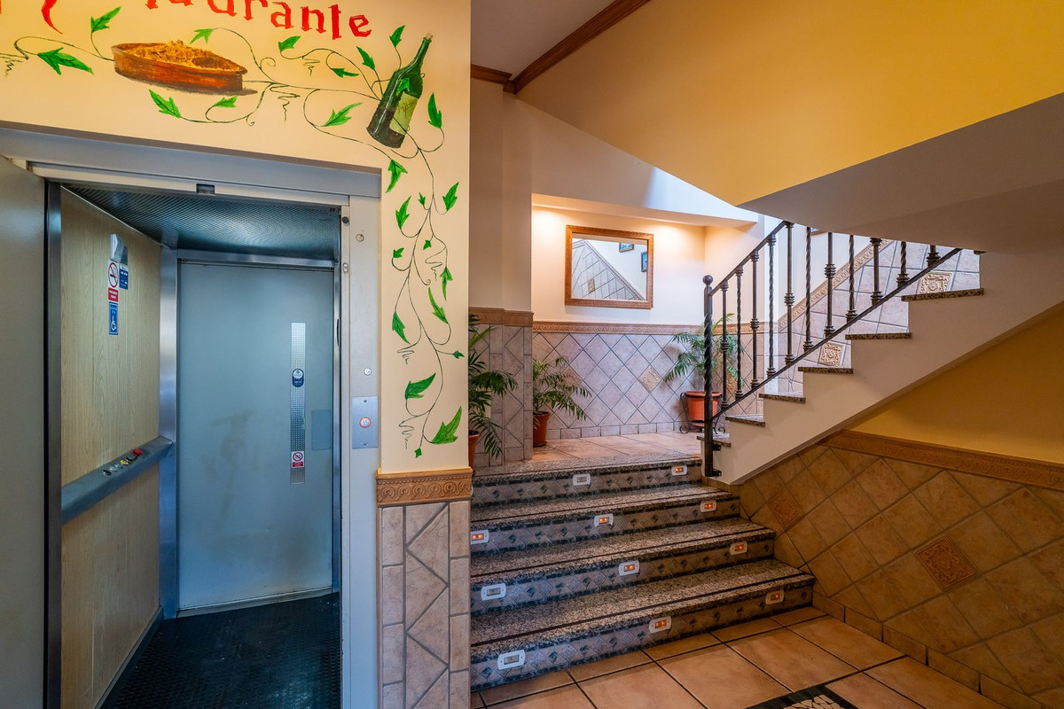 On the upper floor, accessible via elevator, you will find a large hall dedicated to celebrations and events. In addition, the property offers a porch and a large terrace, perfect for summer activities, currently used for barbecues and outdoor gatherings.