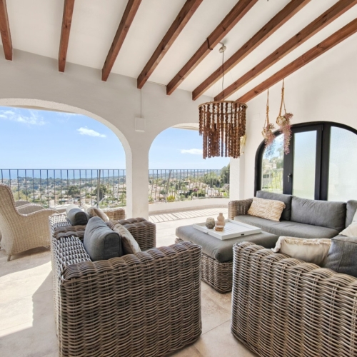 This Mediterranean rustic estate, located on Camí del Rei —a quiet area between Moraira, Teulada, and Benitachell— was conceived in the 90s as the place where a family would grow up happy. Today, that legacy is still alive in every corner: in the beams rescued from old demolitions, in the warmth of the mobila wood, in the nobility of the stone, and in the murmur of the sea visible from its terraces.