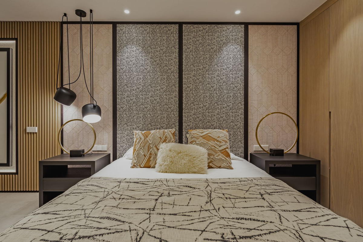 Vi är glada att kunna visa upp en fantastisk parhusfastighet, en del av ett exklusivt bostadsprojekt. Inbäddat i ett säkert område i Nueva Andalucia, lyser denna moderna arkitektoniska pärla med sina rena linjer, fascinerande geometriska exteriör och eleganta naturmaterial i lugnande neutrala nyanser. Fastigheten inbjuder dig att omfamna naturen med en täckt terrass perfekt för middagar och avkoppling.