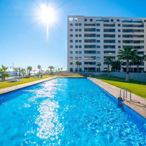Välkommen till denna charmiga och ljusa lägenhet med perfekt läge – endast 250 meter från stranden i Punta Prima. Här bor du med gångavstånd till havet, restauranger, caféer, matbutiker och en av områdets största padelanläggningar.