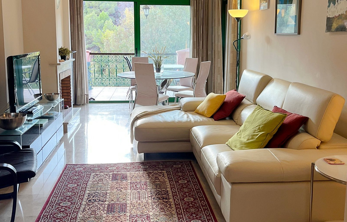 Lägenheten säljs fullt möblerad, är inflyttningsklar och ingår i en välskött förening med pool, padelbana och lekplats för barn.