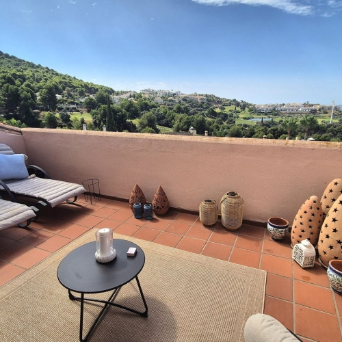 Bright, Impeccable Apartment with Scenic Views in Pueblo Andaluz, Alhaurin Golf.