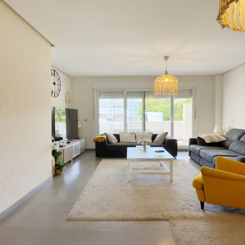 The open-plan living and dining area flows seamlessly onto the terraces, creating bright, inviting spaces perfect for relaxing, entertaining, or simply enjoying Marbella's year-round sunshine.