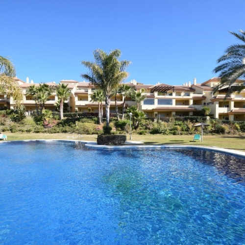 Detta är en markplanslägenhet med två sovrum och trädgård. Lägenheten är i gott skick med ursprungligt kök som enkelt kan öppnas upp om så önskas, matplats och vardagsrum med direkt tillgång till terrassen. Terrassen är en utmärkt plats då den erbjuder fullständig avskildhet och leder till den helt privata trädgården med utsikt över La Concha-berget och det gemensamma poolområdet. Huvudsovrummet är rymligt med eget badrum och direkt tillgång till terrassen. Gästrummet är också av bra storlek och har ett separat badrum.