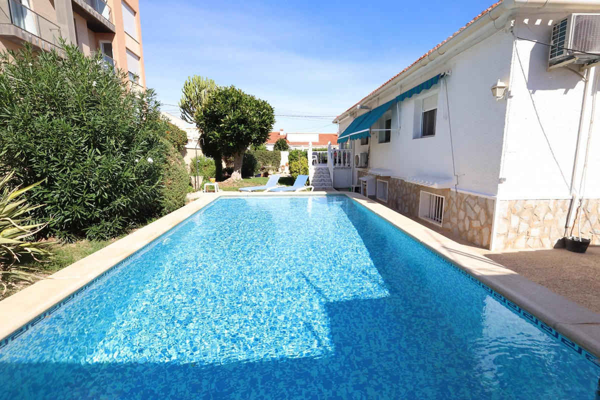 Punta Prima. Just 80 meters from the sea, this magnificent semi-detached house boasts sea views and a spacious 457 m² plot. The property offers a built area of 230 m² distributed between the ground floor and the basement, making it an ideal option both as a permanent residence and as a holiday home.. . The house features four bright and spacious bedrooms, two bathrooms, a large living-dining room, an independent kitchen, a glazed terrace, a storage room, and a parking area within the plot.. . Thanks to its design, the property makes the most of natural light, creating a warm and comfortable atmosphere. It is sold semi-furnished and equipped with air conditioning.. . An excellent opportunity just a few steps from the beach..