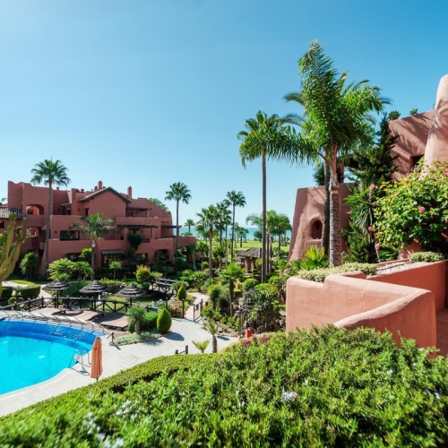 Residents benefit from access to a communal swimming pool and landscaped gardens, as well as a private garage. The location is ideal, close to the beach, golf courses, shops, restaurants, and transport links — everything you need is just a few minutes away.