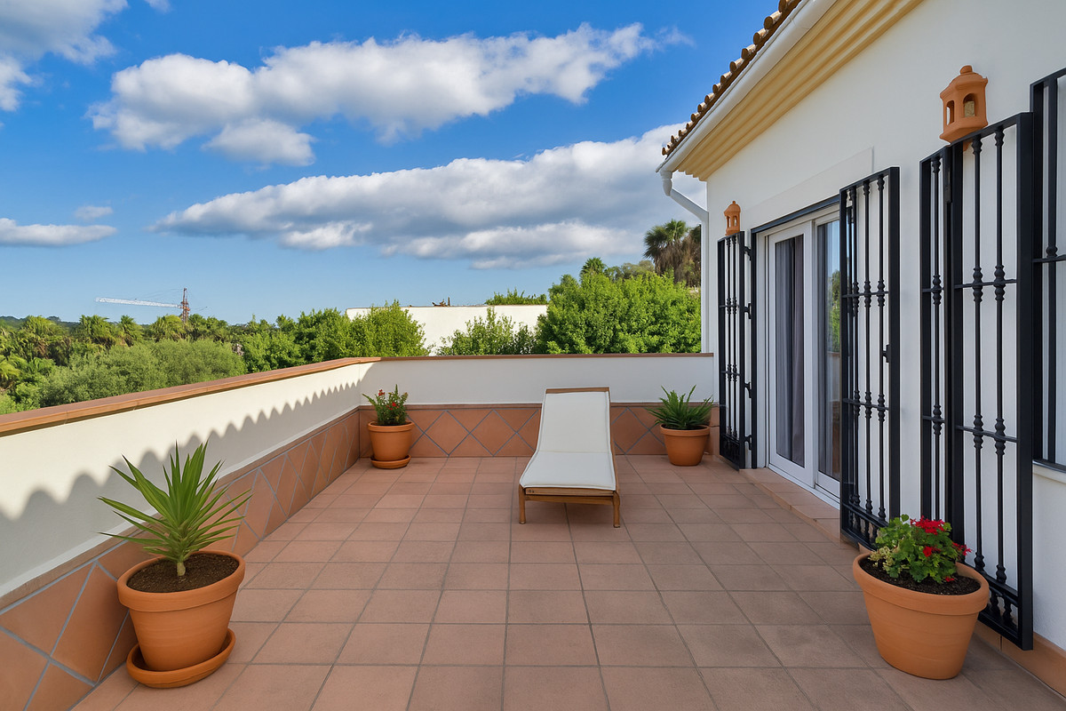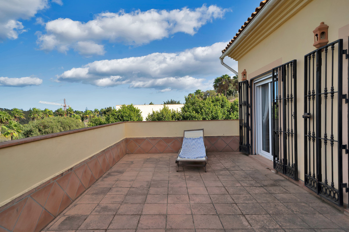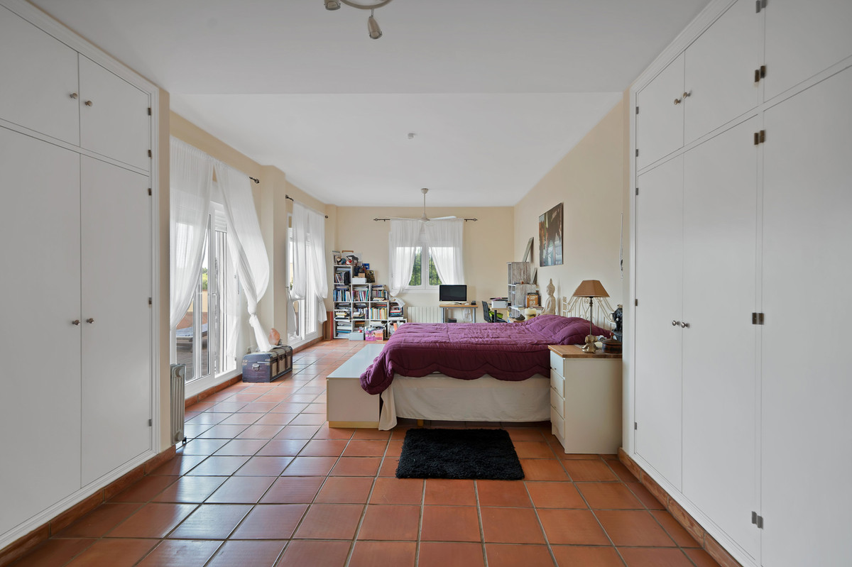 On the first floor, there is the master bedroom with an en-suite bathroom and a large terrace from which you can enjoy panoramic views. There are two more bedrooms, one with its own terrace and a full bathroom.