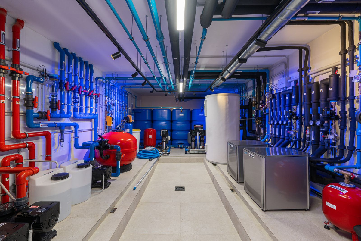 The lower level is dedicated to wellness and entertainment, featuring a fully equipped guest suite, laundry area, elegant lounge with custom bar, and a complete spa with an indoor heated pool, sauna, and gym. A bespoke machine room by Proinsermant further showcases the property's technical innovation and operational refinement.