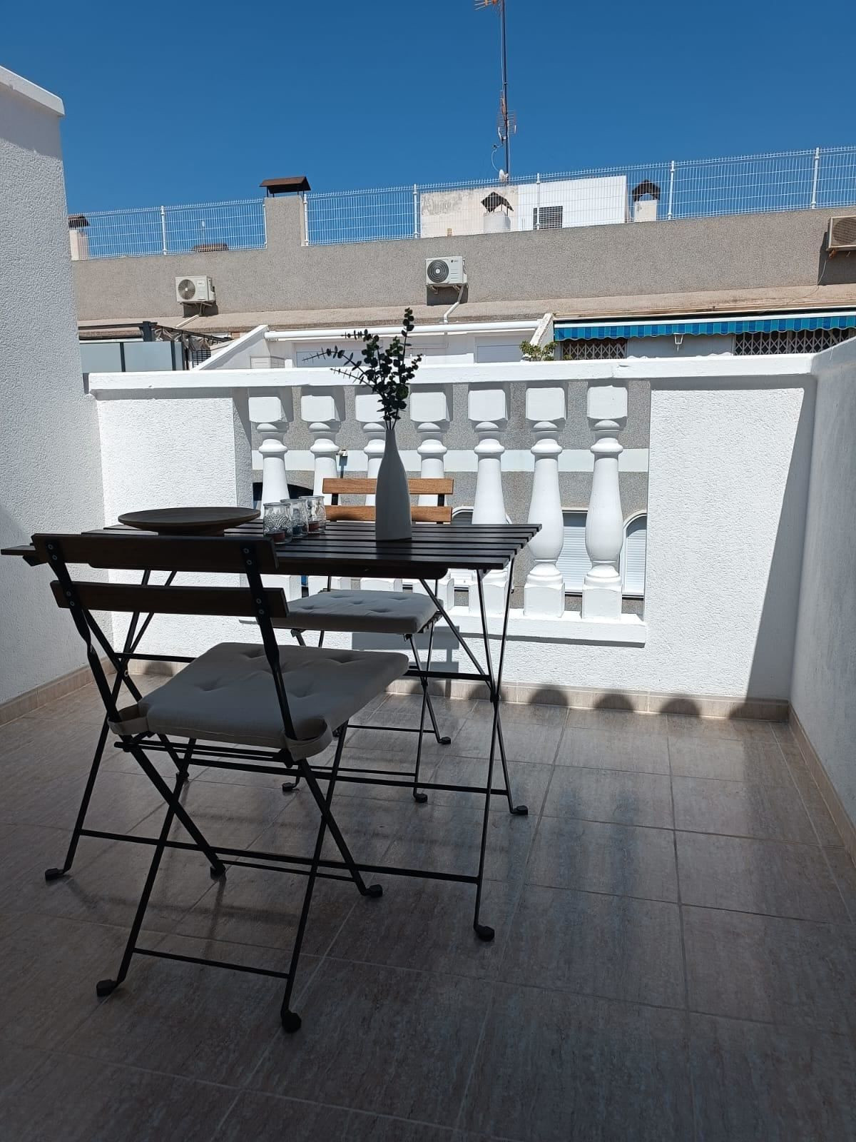 Den generösa terrassen i österläge blir en naturlig plats för frukost i solen eller avkoppling under varma kvällar. Tack vare det höga läget flödar ljuset in i hela bostaden och skapar en inbjudande atmosfär. Luftkonditionering med både kyla och värme säkerställer behagligt inomhusklimat året om, och de inbyggda garderoberna i sovrummen erbjuder smart förvaring.