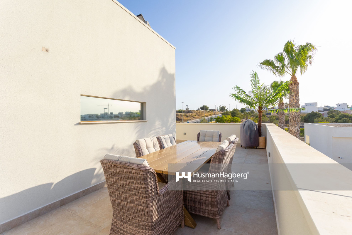 Benijófar är en levande och välskött ort där det mesta finns inom räckhåll – butiker, restauranger, vårdcentral och skolor. Du har golfbanor några minuter bort, de vidsträckta stränderna vid Guardamar inom en kvart med bil, och flygplatsen i Alicante når du på drygt 30 minuter.