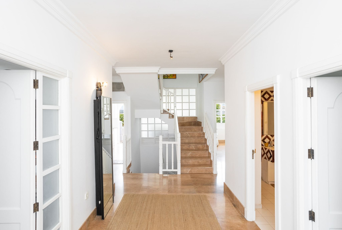 Villan har stilren och charmig arkitektur samtidigt som den har en bra planlösning och ett genomgående trevligt ljusflöde. På tomten finns en privat pool. Det finns flera altaner och terrasser samt gott om plats för utemöbler och loungegrupper. Parkeringsmöjligheter i garage.