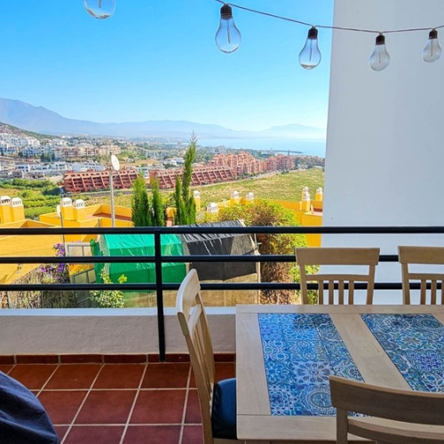 Set within a secure gated community just minutes from La Duquesa beach, this stylish apartment offers the ideal blend of comfort, space, and lifestyle. The open-plan layout features a light-filled living and dining area, a fully fitted kitchen, and a guest toilet with utility space. The southeast-facing terrace captures morning sun and open views, perfect for relaxed outdoor living, and offers fabulous views to the sea. The master suite includes an bathroom and private terrace with sweeping sea views, while two additional bedrooms share a family bathroom, ideal for guests or family use.