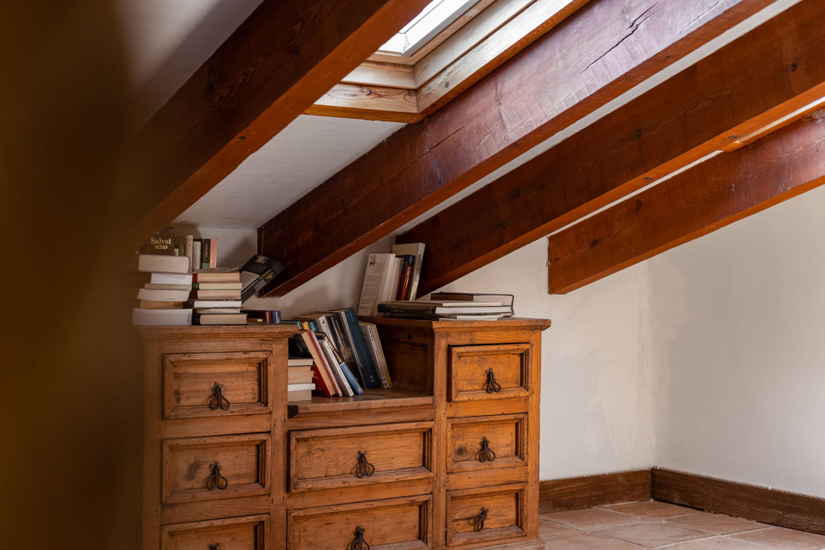 En våning upp finns ytterligare ett sovrum, ett badrum och ett vardagsrum.