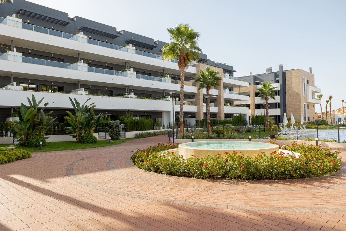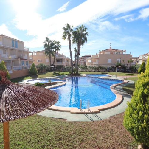 Flamenca Village är ett gated community med vackra gemensamma poolområden, grönskande trädgårdar och närhet till såväl strand som shopping. Här har du gångavstånd till Medelhavet, restauranger, caféer och La Zenia Boulevard. För den aktiva finns både padelbanor och golfbanor i närheten.