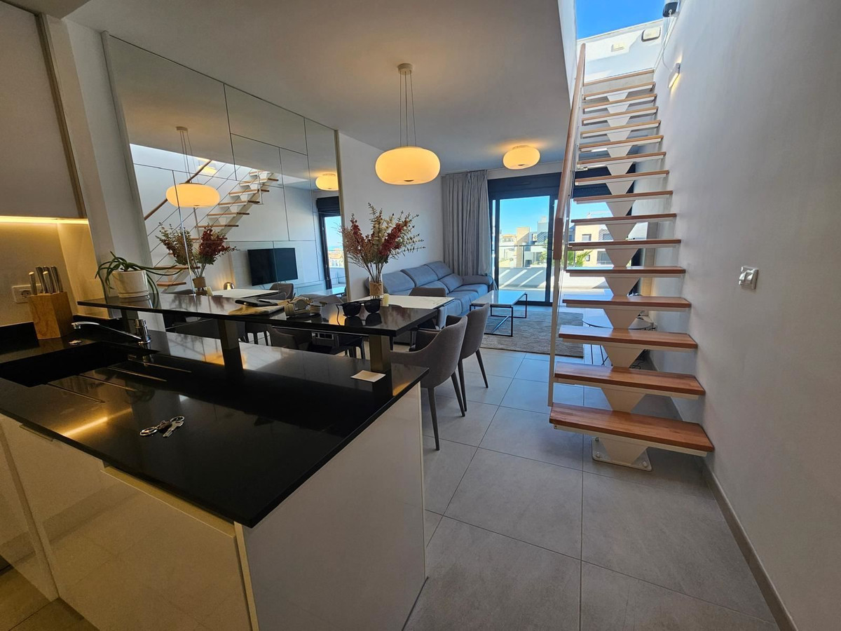 Välkommen till denna ljusa och moderna lägenhet med två generösa terrasser, belägen i det exklusiva bostadsområdet Flamenca Village – ett av Playa Flamencas mest populära områden. Här bor du med ett stilrent boende där varje detalj är genomtänkt för komfort och trivsel.