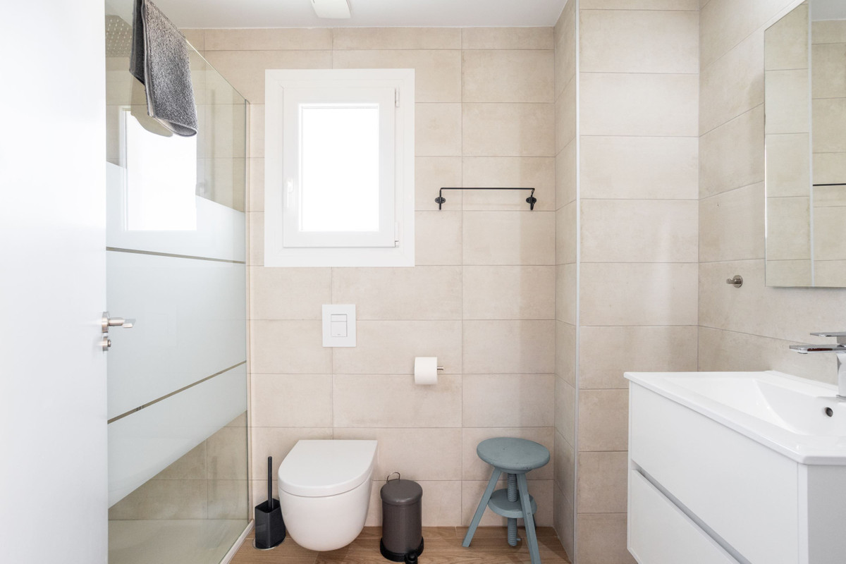 På övre plan finns ett tredje sovrum med eget badrum (en suite) och direkt access till den stora terrassen – en perfekt plats för morgonkaffet eller kvällens solnedgång.
