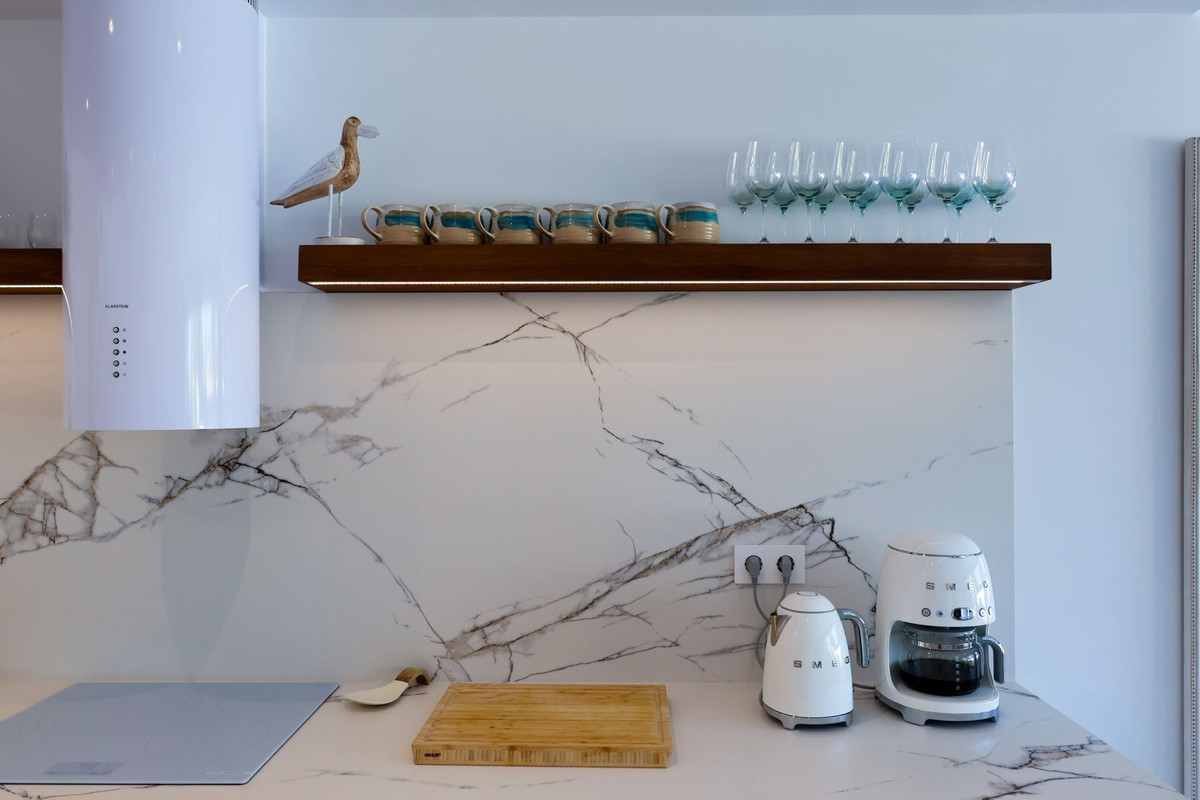Huset är utrustat med exklusiva detaljer och materialval – här ingår alla vitvaror från välkända SMEG. Köket är elegant och funktionellt med plats för kulinariska upplevelser, medan de öppna sällskapsytorna bjuder in till både vardag och fest.
