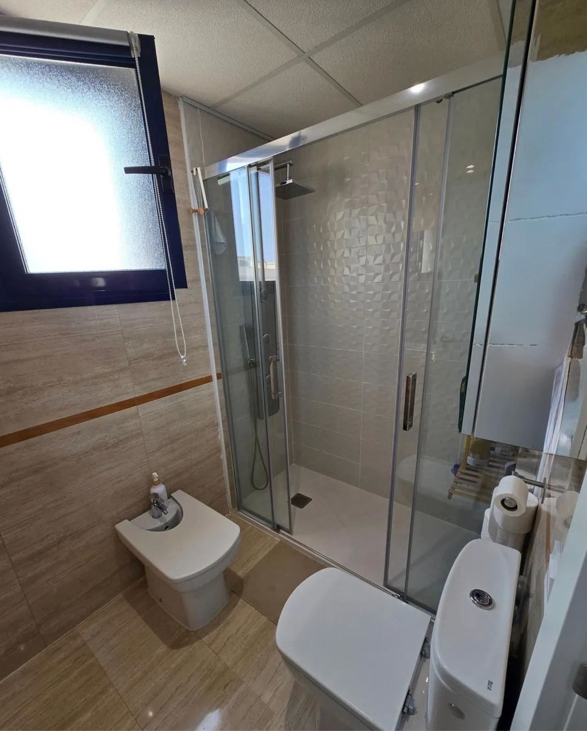 Det moderna köket är praktiskt planerat, och bostaden har individuell uppvärmning via naturgas samt installerad luftkonditionering. Tillgången är anpassad för personer med nedsatt rörlighet, och byggnaden har hiss.