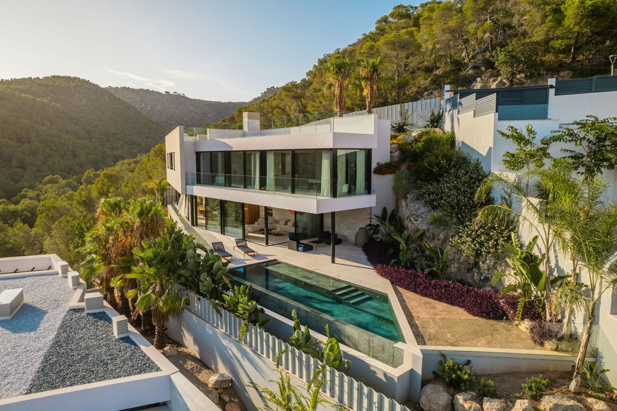 Villa Zafiro is an architectural masterpiece for sale in the prestigious Costa d'en Blanes, one of Mallorca's most sought-after residential enclaves. Scheduled for completion in 2025, this modern residence spans 584 m² of constructed space, including 540 m² of interiors and 44 m² of terraces, combining contemporary elegance with panoramic views of the sea and surrounding green valleys.