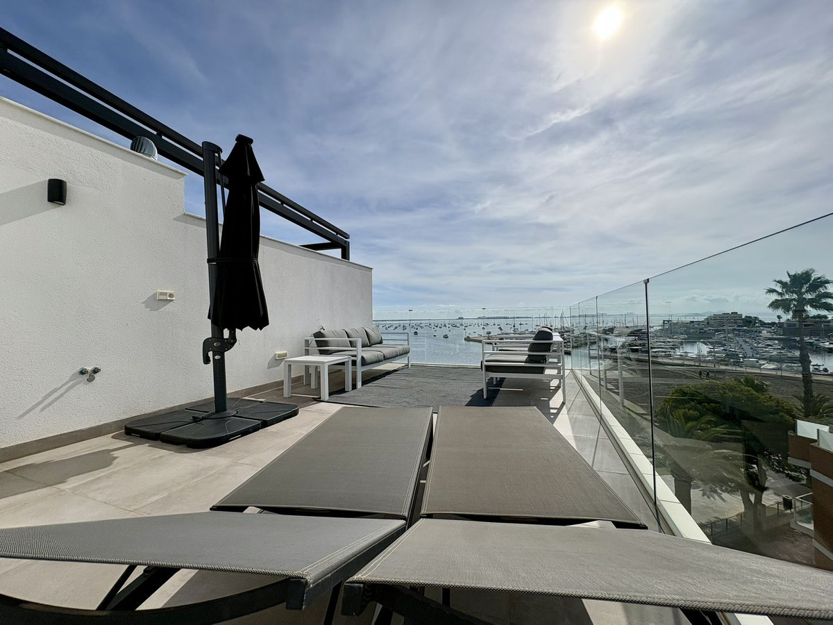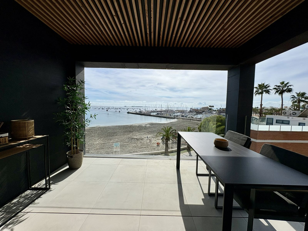Upplev detta eleganta duplex-penthouse på första strandlinjen i Lo Pagán, San Pedro del Pinatar – en bostad som kombinerar modern arkitektur, hög komfort och en spektakulär utsikt över havet.