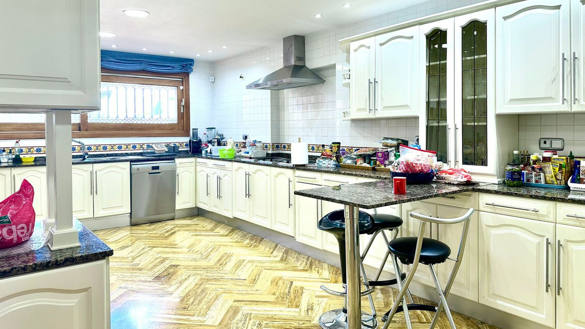 Large villa in good condition, with a total built area of 834 m² plus 573 m² of terraces and porches on a plot of 4,348 m². Built in 1981. East facing. The main building consists of a large entrance hall, guest toilet, large double-height living room, separate dining room, kitchen, sitting room with access to the terrace, a bedroom with en-suite bathroom with separate access and service access. The upper floor comprises a sitting room, a second bedroom with access to a balcony and en-suite bathroom, a third bedroom with en-suite bathroom, a fourth bedroom with access to a terrace with magnificent views of La Concha and the sea, and a large master suite comprising a bedroom, dressing room, large bathroom and terrace with views. Large parking area and garage for 5 vehicles. Other buildings consist of a garage for one vehicle, a bedroom with bathroom for the driver, a bedroom with bathroom for the staff, and a laundry room. Large barbecue area with a large covered terrace. Infinity pool. Paddle tennis court. Beautiful gardens with a large number of trees.