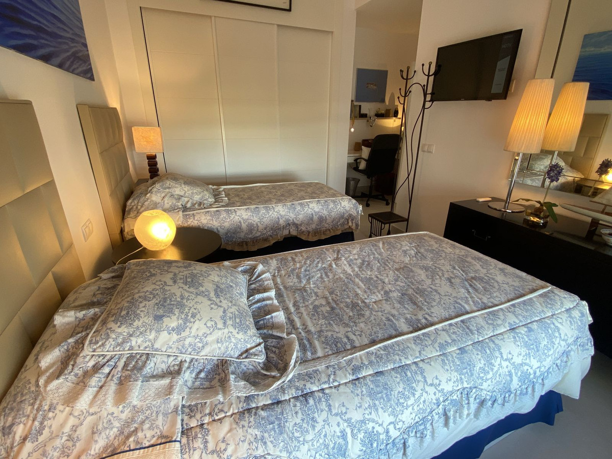 Mastersviten har en walk-in-garderob och privat terrass, kompletterad med två ytterligare sovrum – perfekta för gäster eller familj. Marmorgolv, exklusiva snickerier och fullständig klimatanläggning garanterar komfort och elegans i varje detalj.