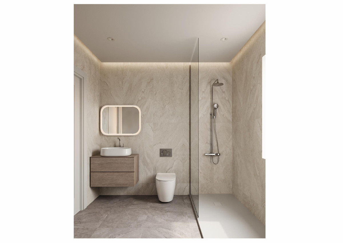 • Bottenvåning: rymligt öppet vardagsrum med kök, direkt utgång till poolen, gästsovrum, badrum och klädkammare. Designen skapar ett ljust och sammanhängande utrymme – idealiskt för familjeliv och umgänge.