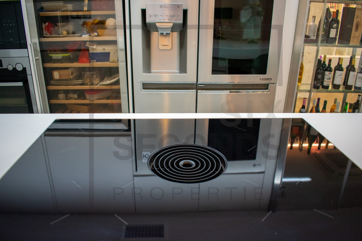 The separate kitchen with a breakfast bar allows you to enjoy cooking in complete comfort. It also features a wine cellar / display case for storing and showcasing your favorite wines.\n